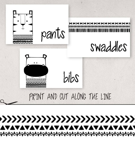 Baby Clothes Labels Nursery Drawer Organizer Black And White Aztec Animals Baby Boy Nursery Organization Divider Tags Drawer Labels